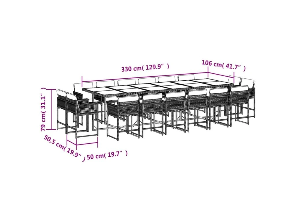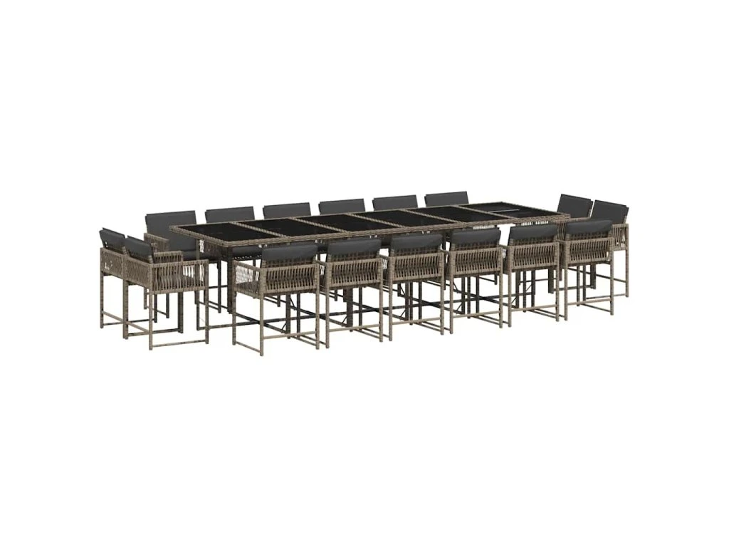 17dílný zahradní jídelní set s poduškami šedý polyratan 3211604