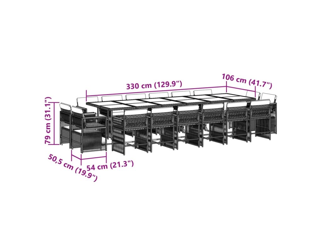 17dílný zahradní jídelní set s poduškami šedý polyratan 3211784