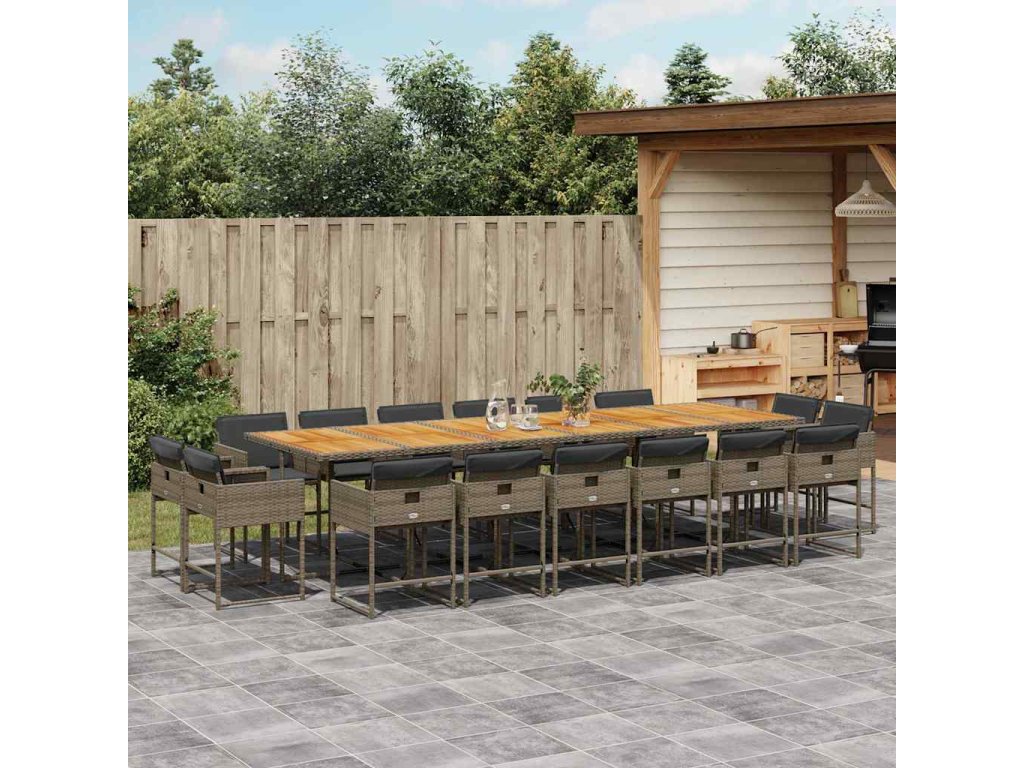 17dílný zahradní jídelní set s poduškami šedý polyratan 3278197