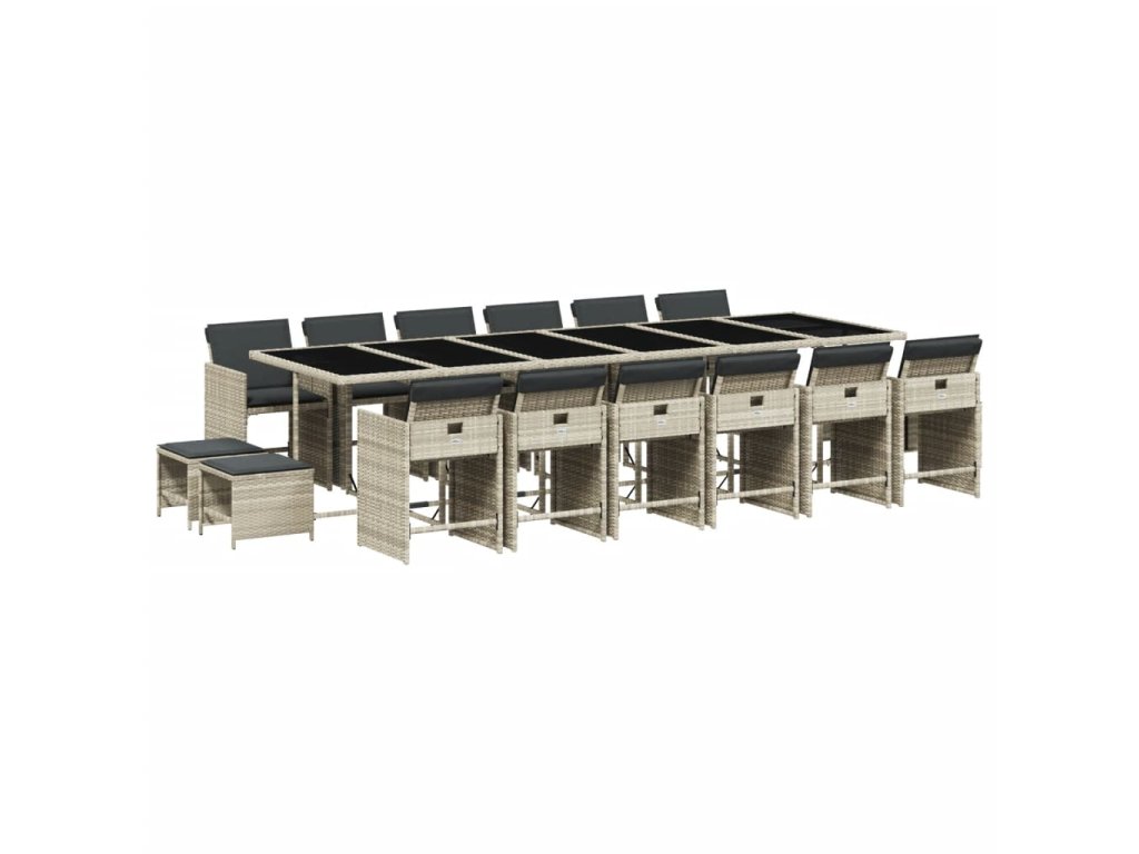 17dílný zahradní jídelní set s poduškami světle šedý polyratan 3277954