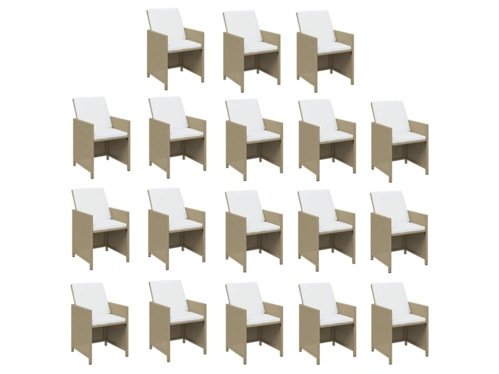 19dílný zahradní jídelní set s poduškami polyratan béžový 3095651