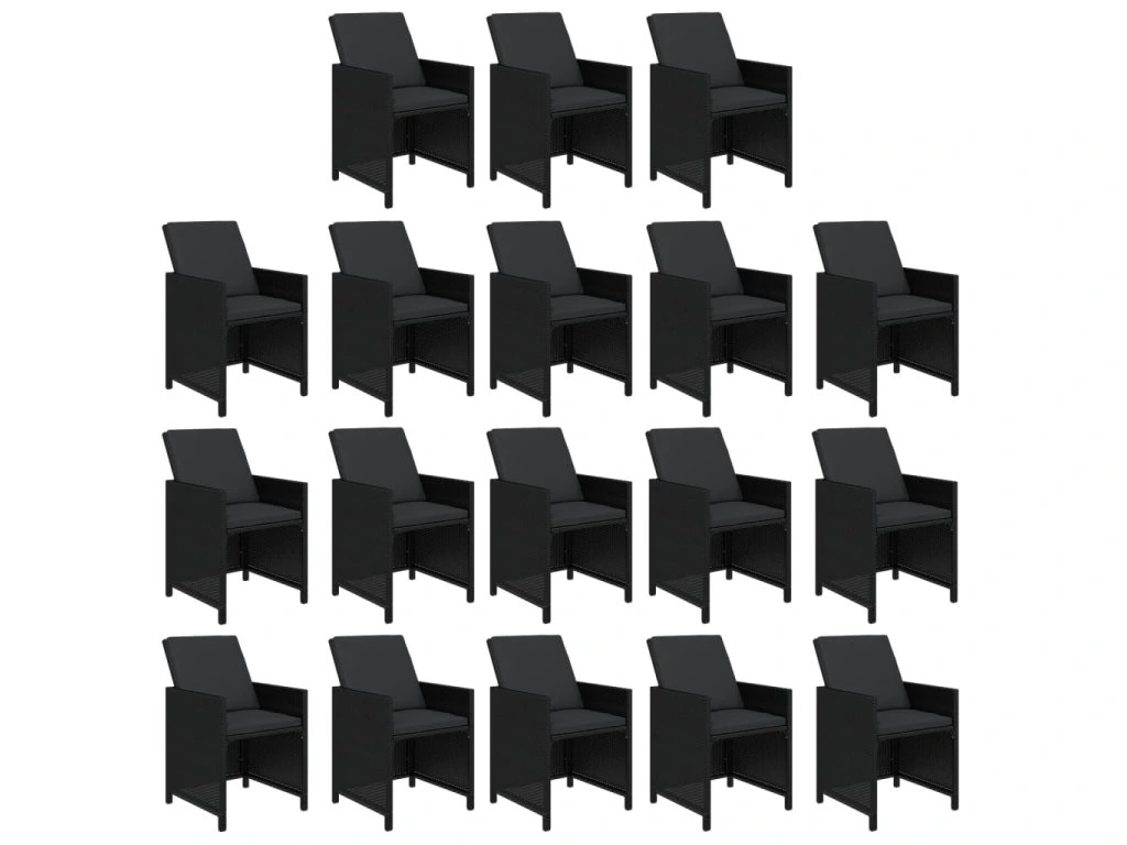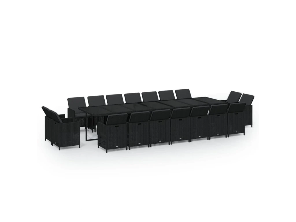 19dílný zahradní jídelní set s poduškami polyratan černý 3095641