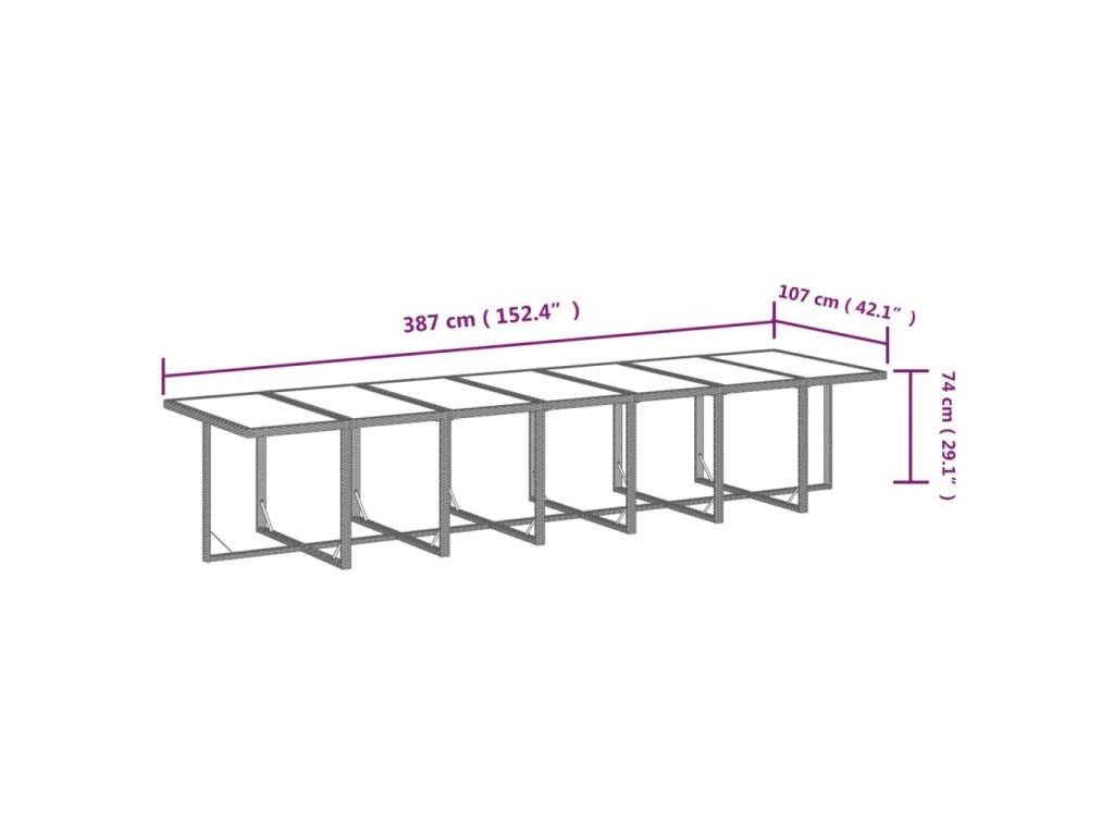 - Rozměry stolu: 387 x 107 x 74 cm (D x Š x V)