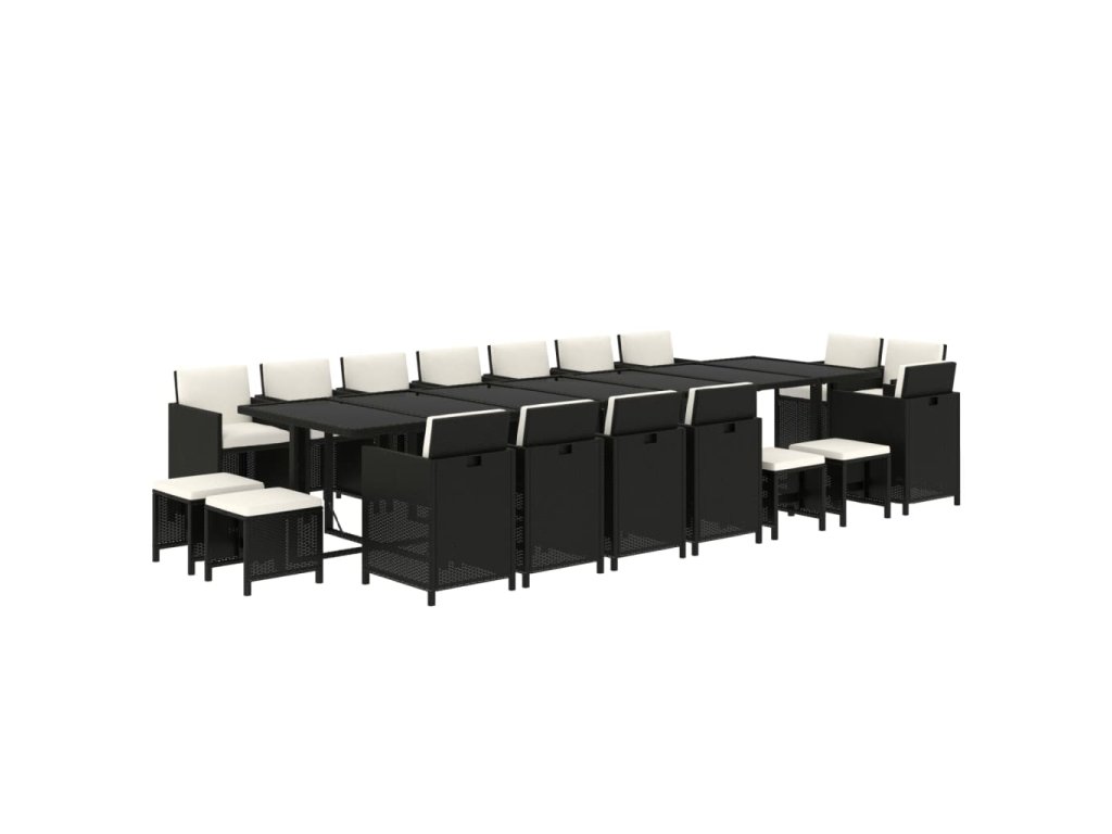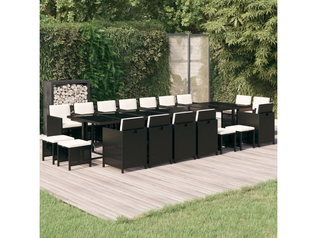 19dílný zahradní jídelní set s poduškami polyratan černý 3095642