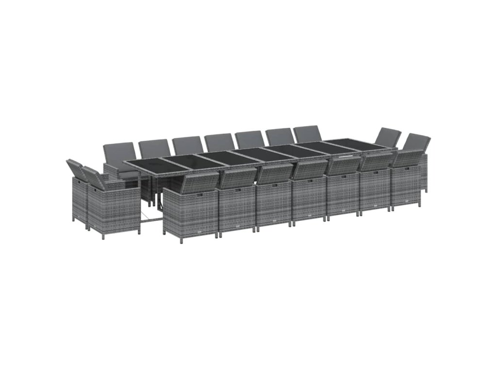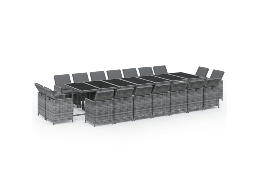 19dílný zahradní jídelní set s poduškami polyratan šedý 3095645