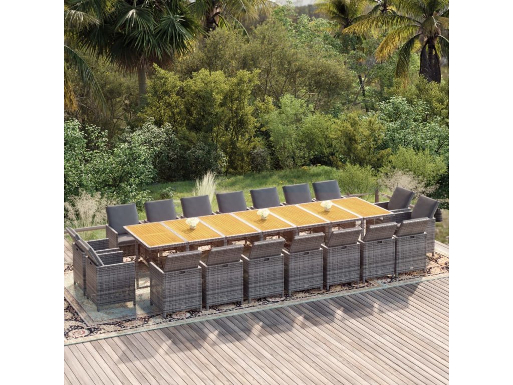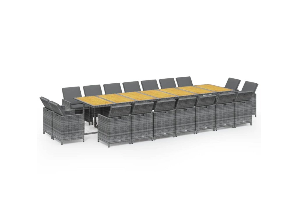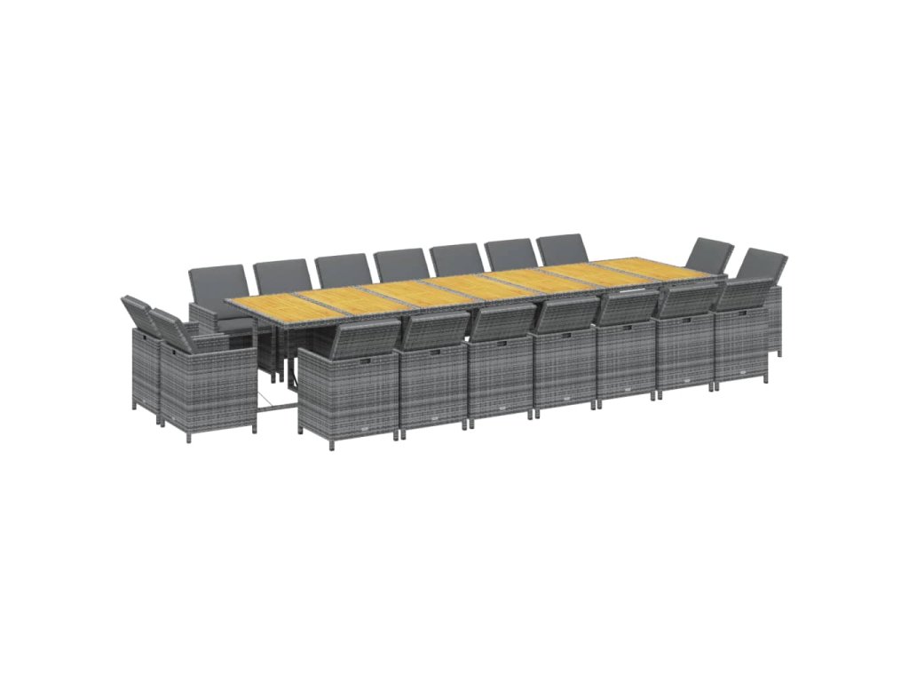 19dílný zahradní jídelní set s poduškami šedý polyratan 3095660