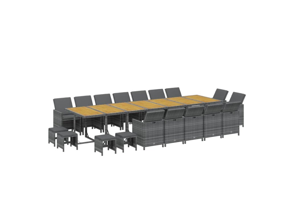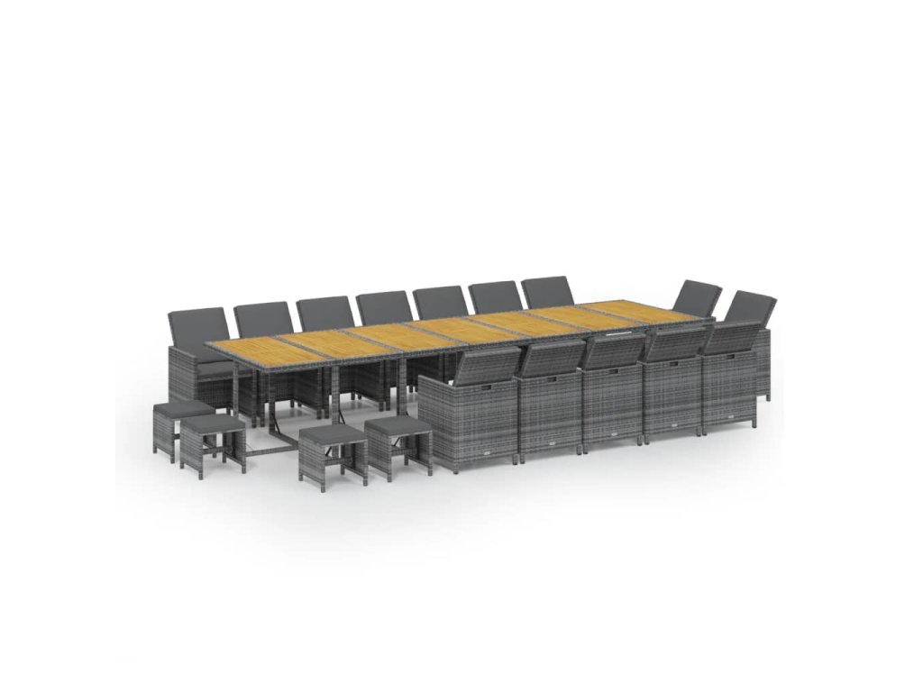 19dílný zahradní jídelní set s poduškami šedý polyratan 3095661