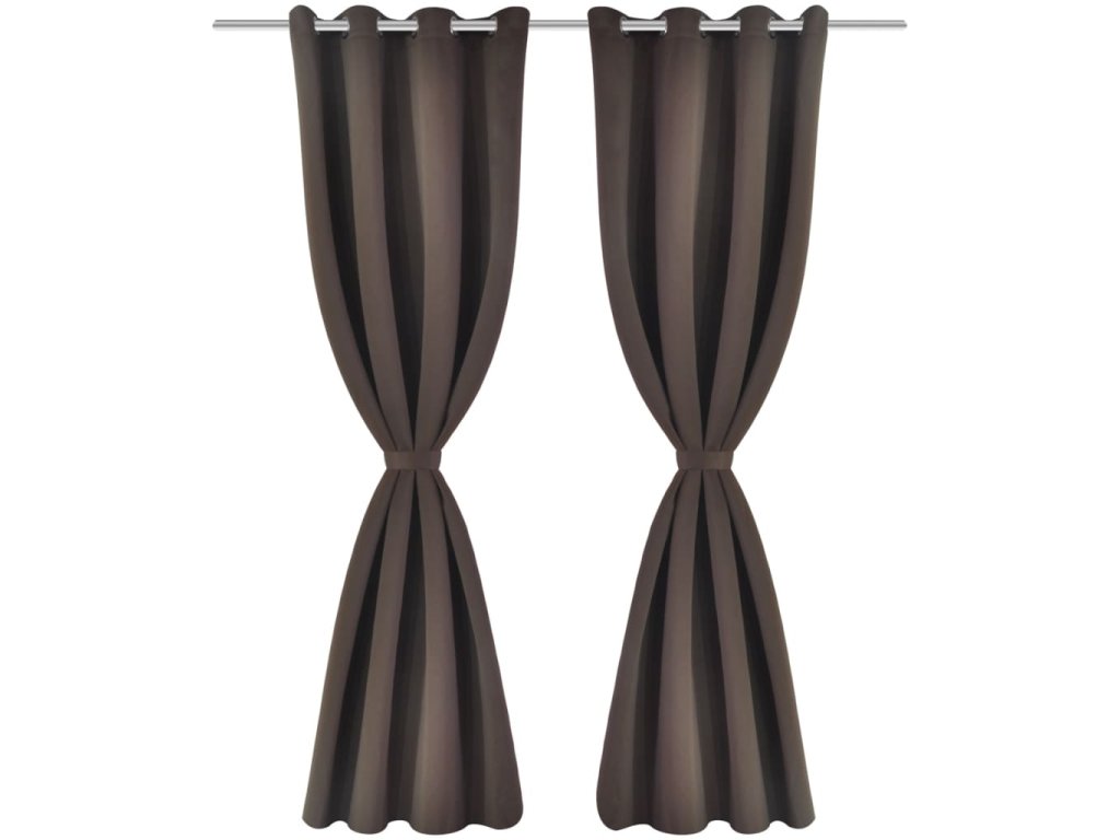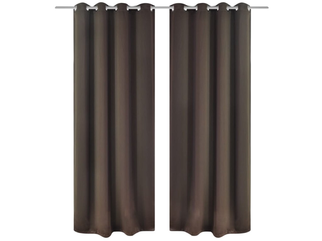 2 ks hnědé zatemňovací závěsy s kovovými kroužky 135 x 245 cm 130371