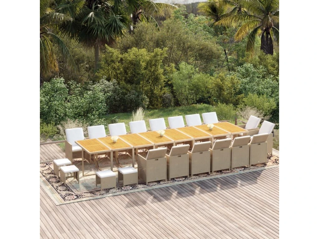 21dílný zahradní jídelní set s poduškami béžový polyratan 3095691