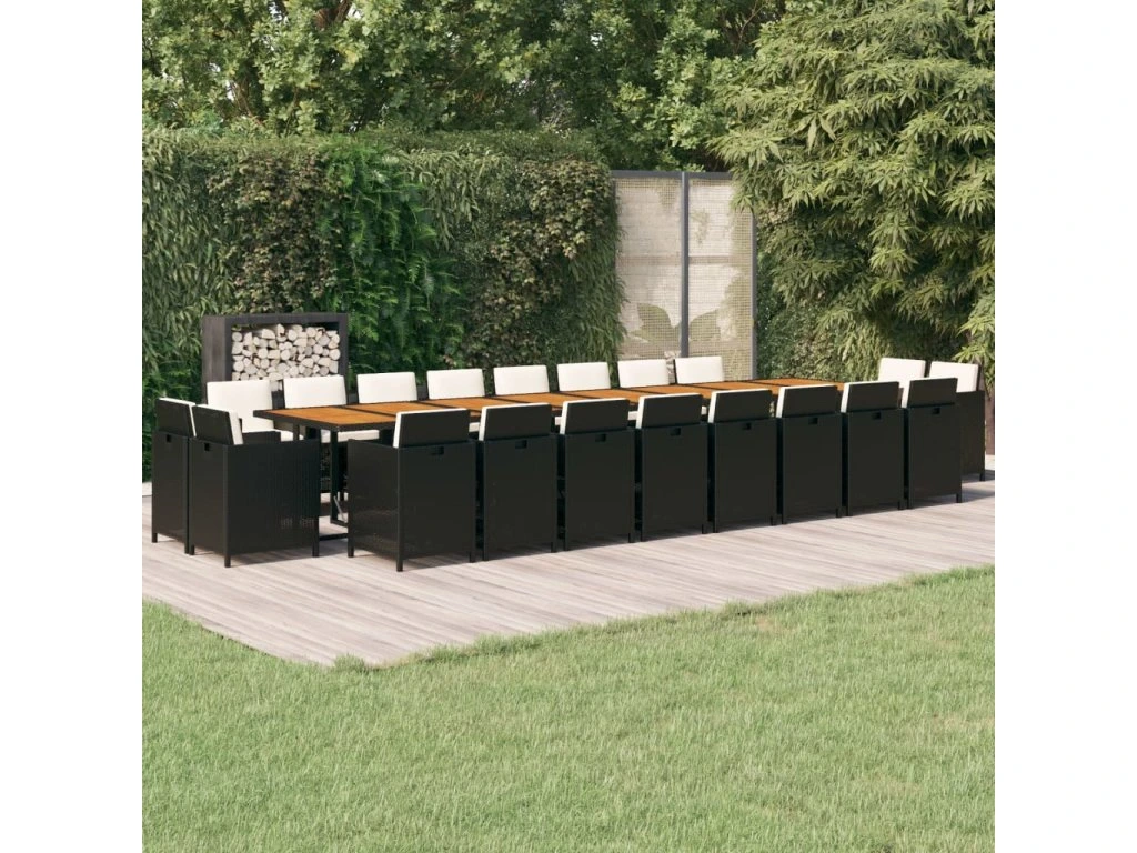 21dílný zahradní jídelní set s poduškami černý polyratan 3095682