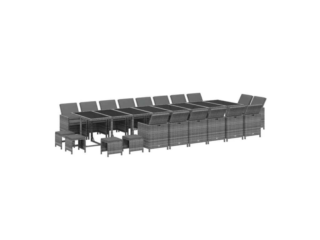21dílný zahradní jídelní set s poduškami šedý polyratan 3095673