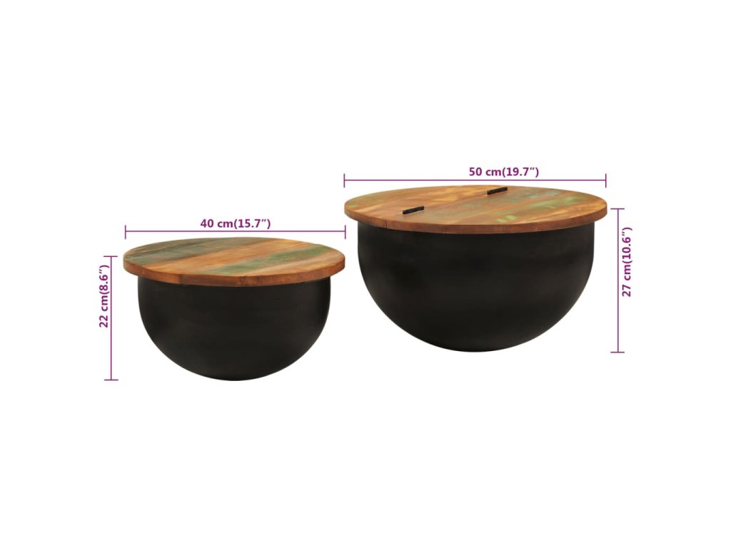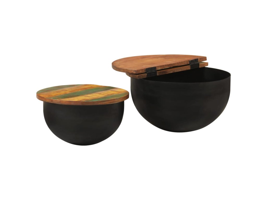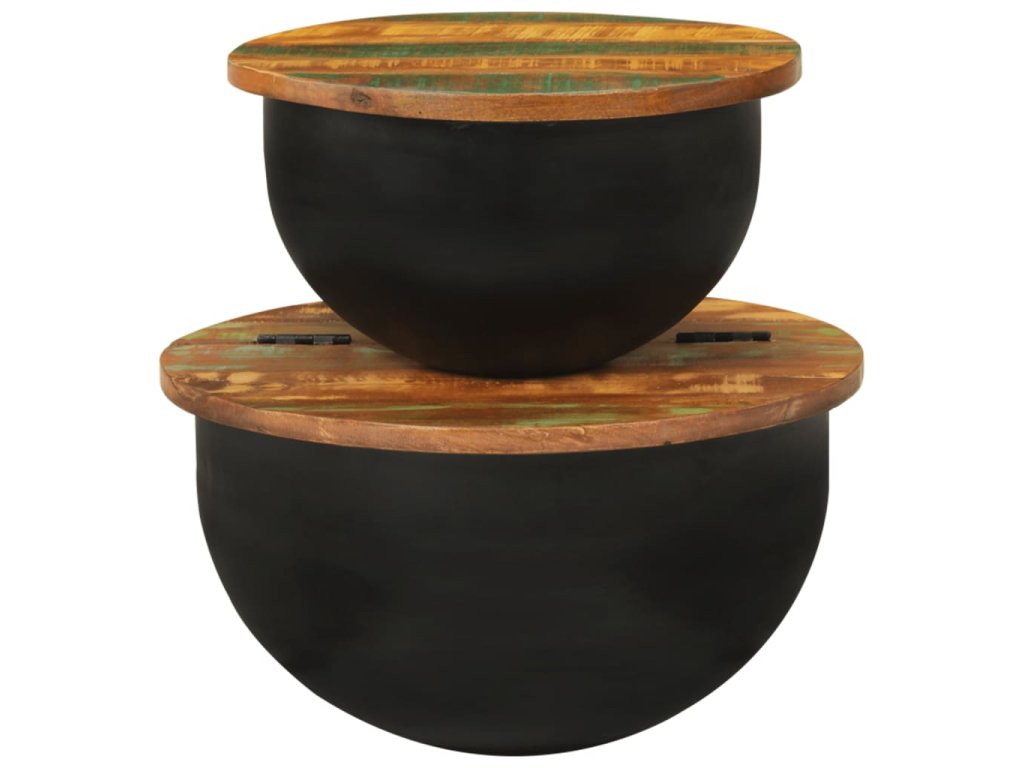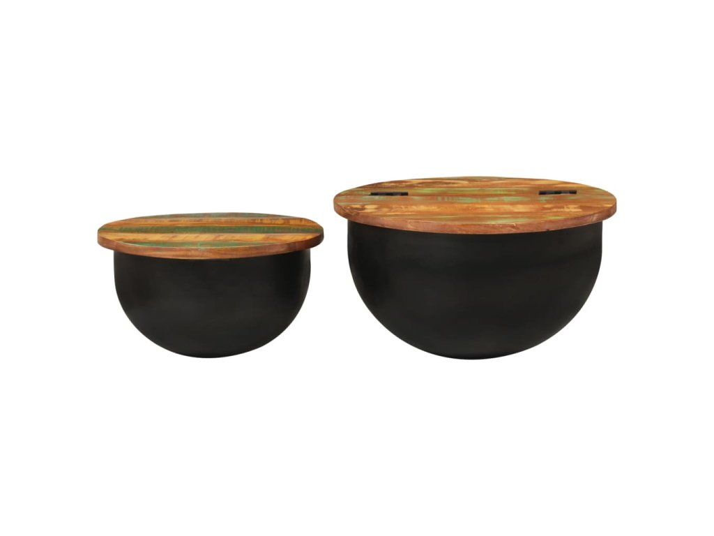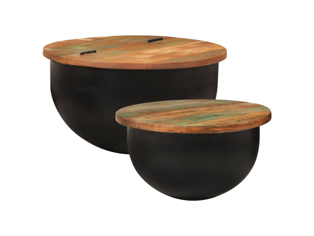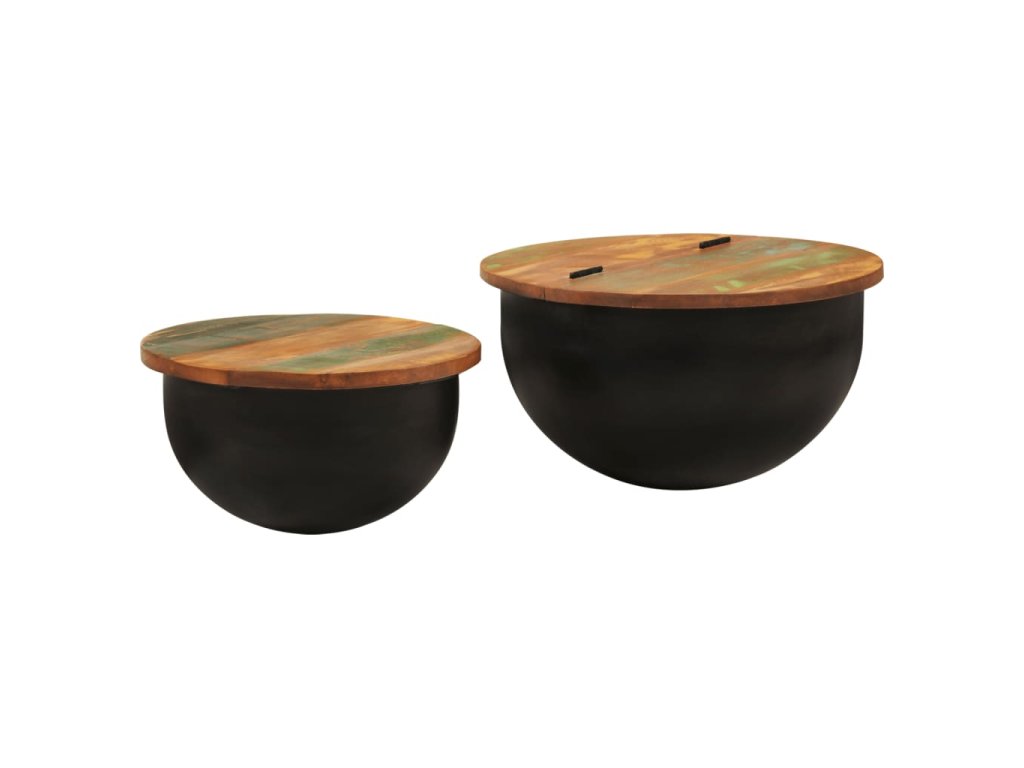2dílná sada konferenčních stolků černá masiv recyklované dřevo 351753