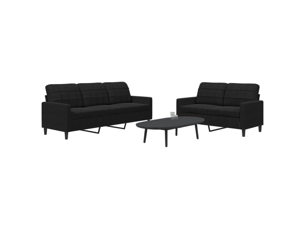 2dílná sedací souprava s poduškami černá samet 3278396