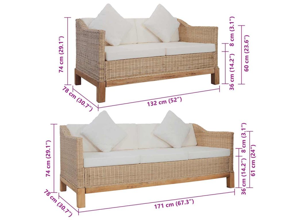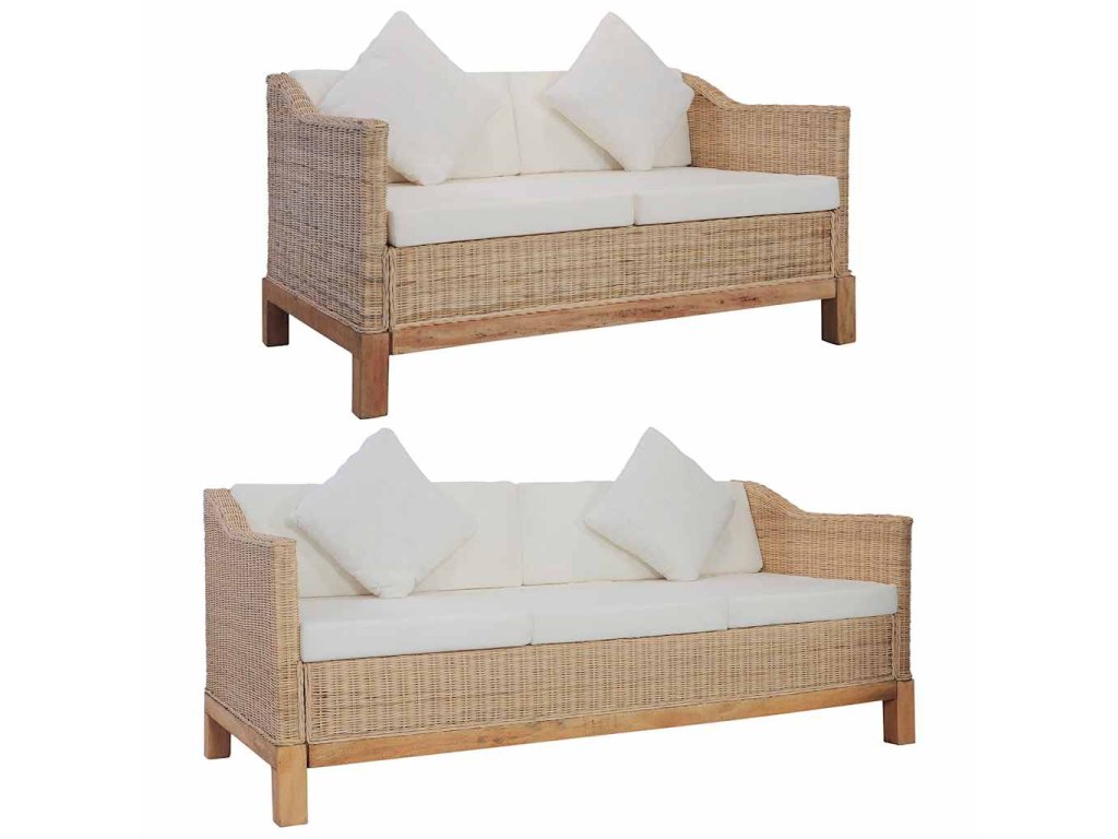 2dílná sedací souprava s poduškami přírodní ratan 278615