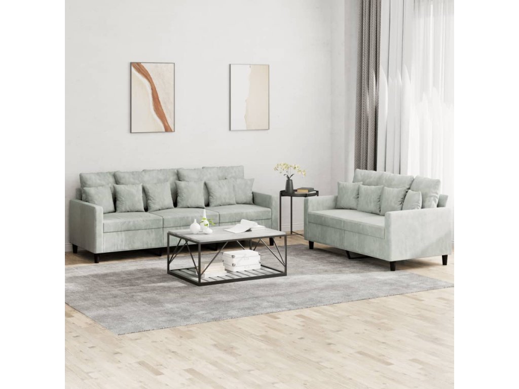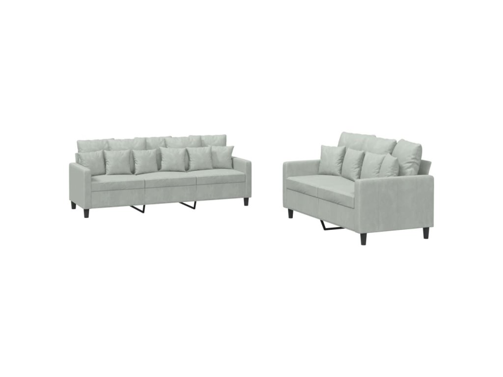 2dílná sedací souprava s poduškami světle šedá samet 3201720