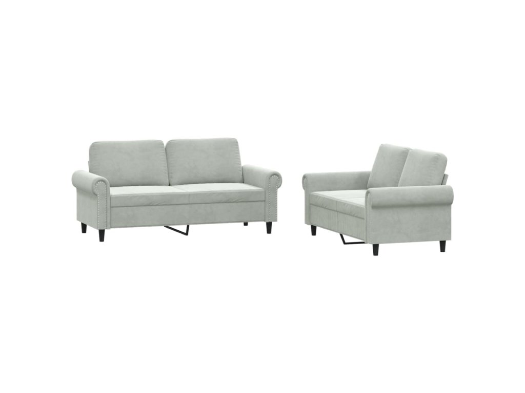 2dílná sedací souprava s poduškami světle šedá samet 3202210