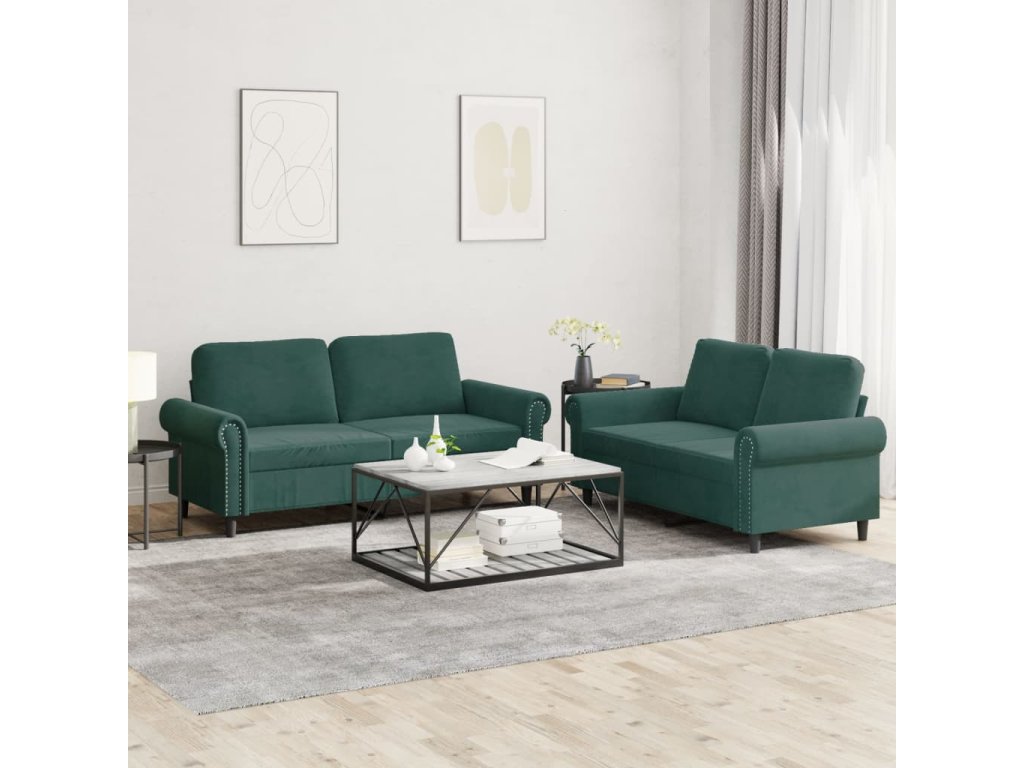 2dílná sedací souprava s poduškami tmavě zelená samet 3202212