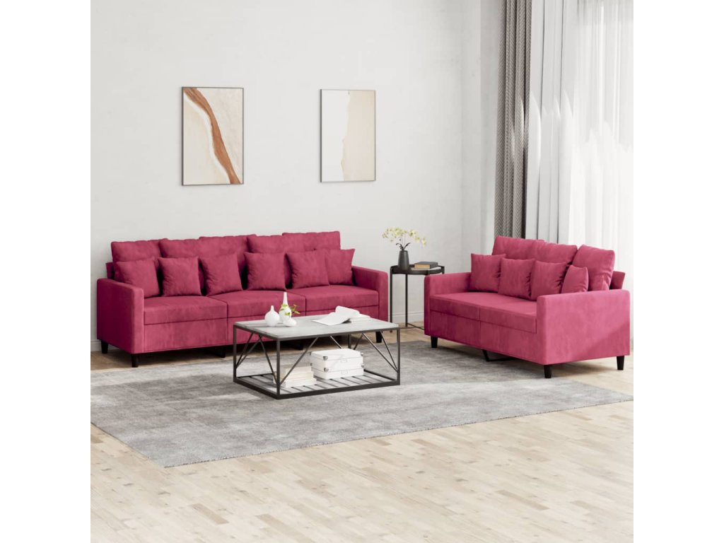 2dílná sedací souprava s poduškami vínová samet 3201724