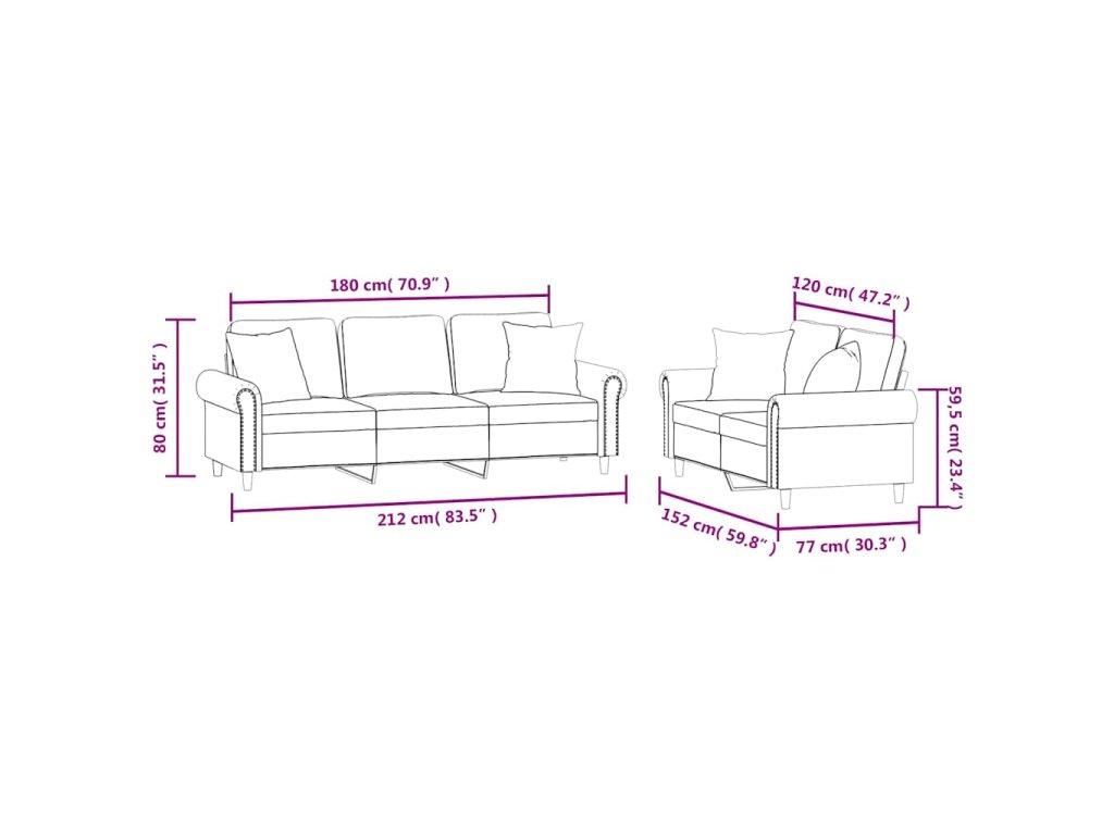 2dílná sedací souprava s polštáři hnědá samet 3202277