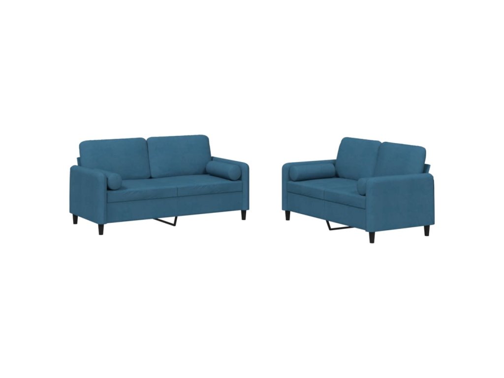 2dílná sedací souprava s polštáři modrá samet 3202003