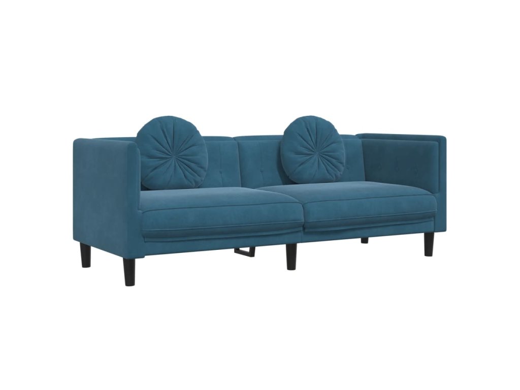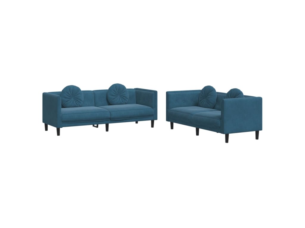 2dílná sedací souprava s polštáři modrá samet 3209265