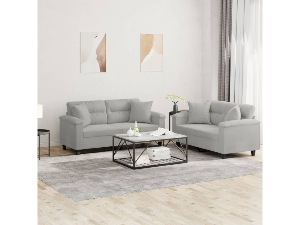 2dílná sedací souprava s polštáři světle šedá mikrovlákno 3202327