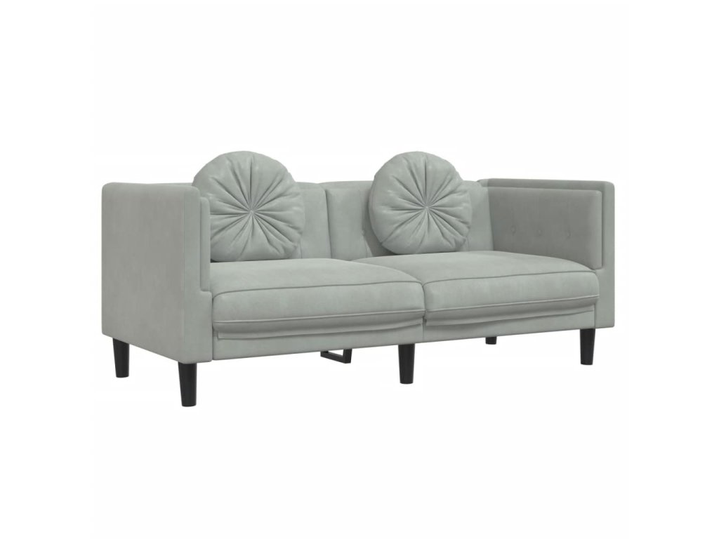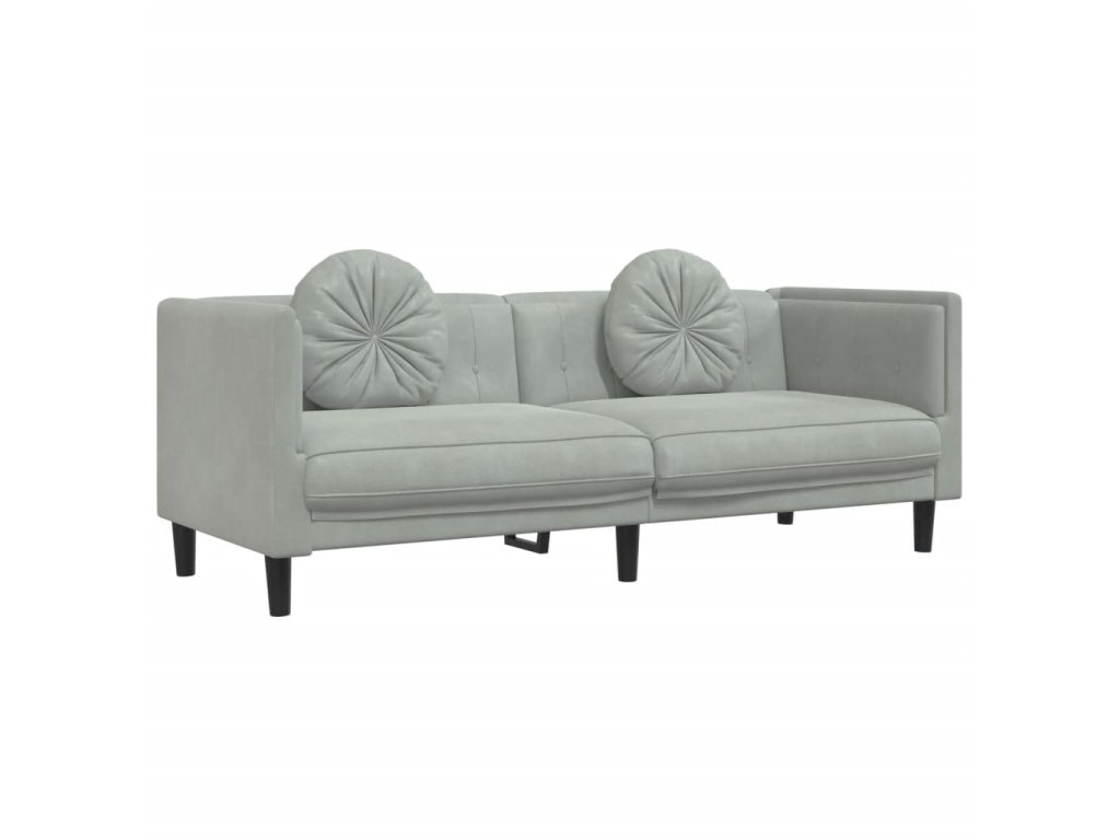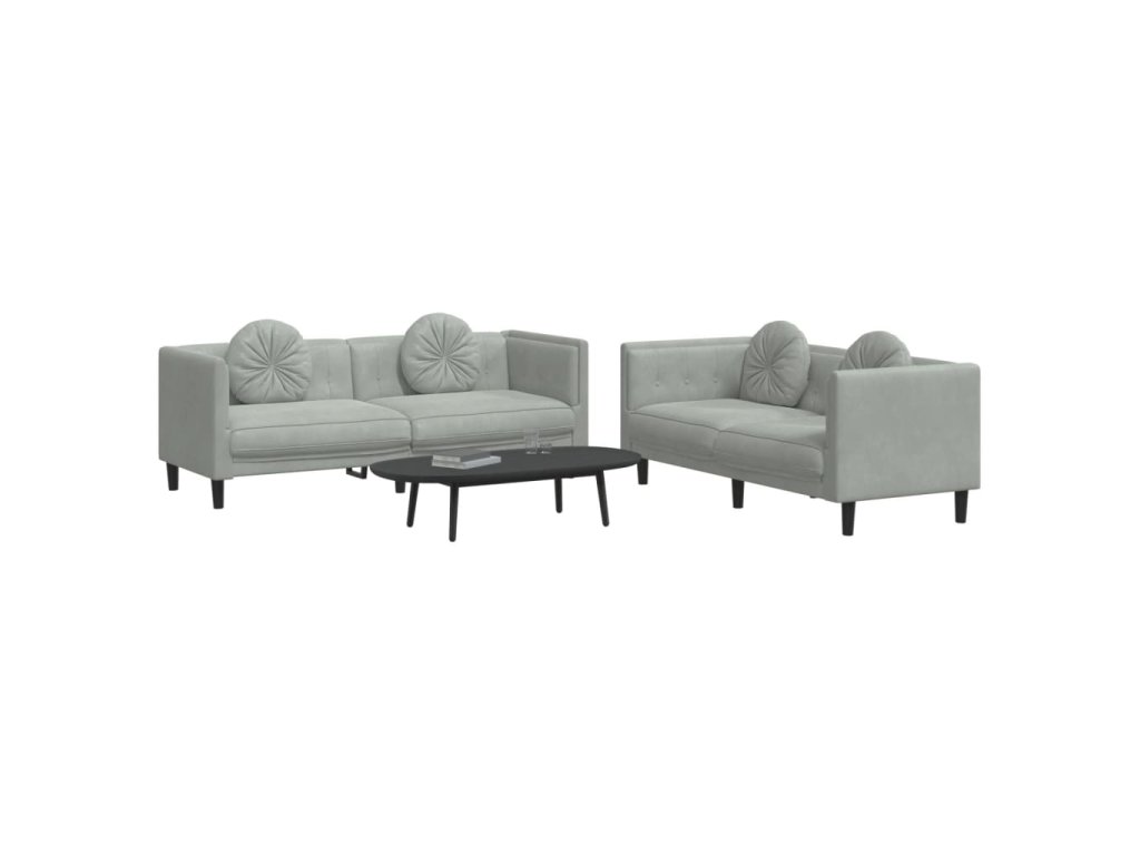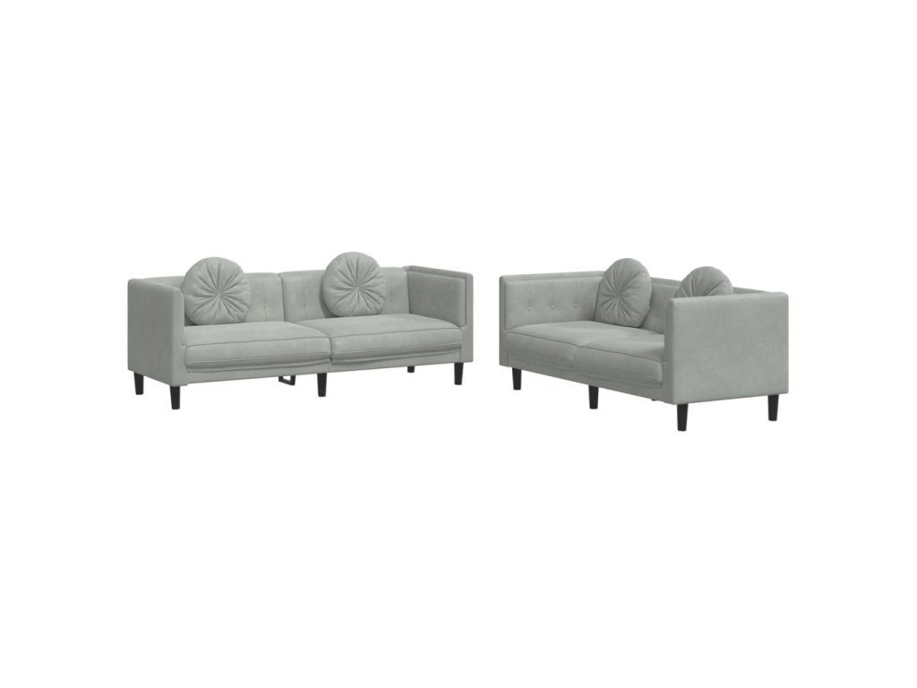 2dílná sedací souprava s polštáři světle šedá samet 3209257
