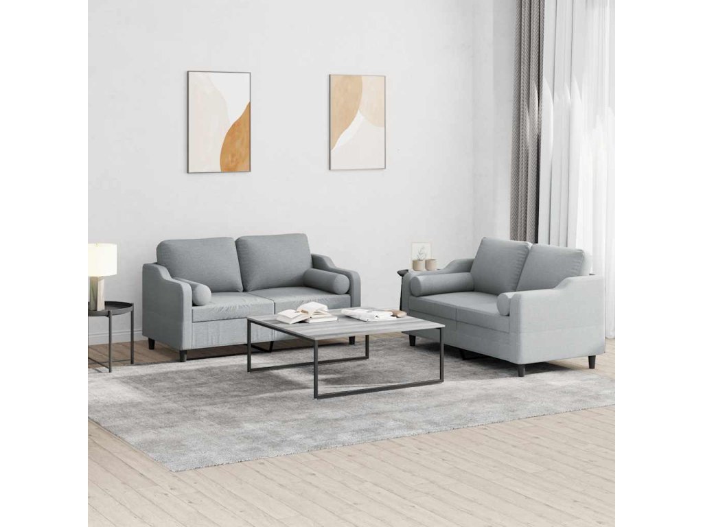 2dílná sedací souprava s polštáři světle šedá textil 3201818