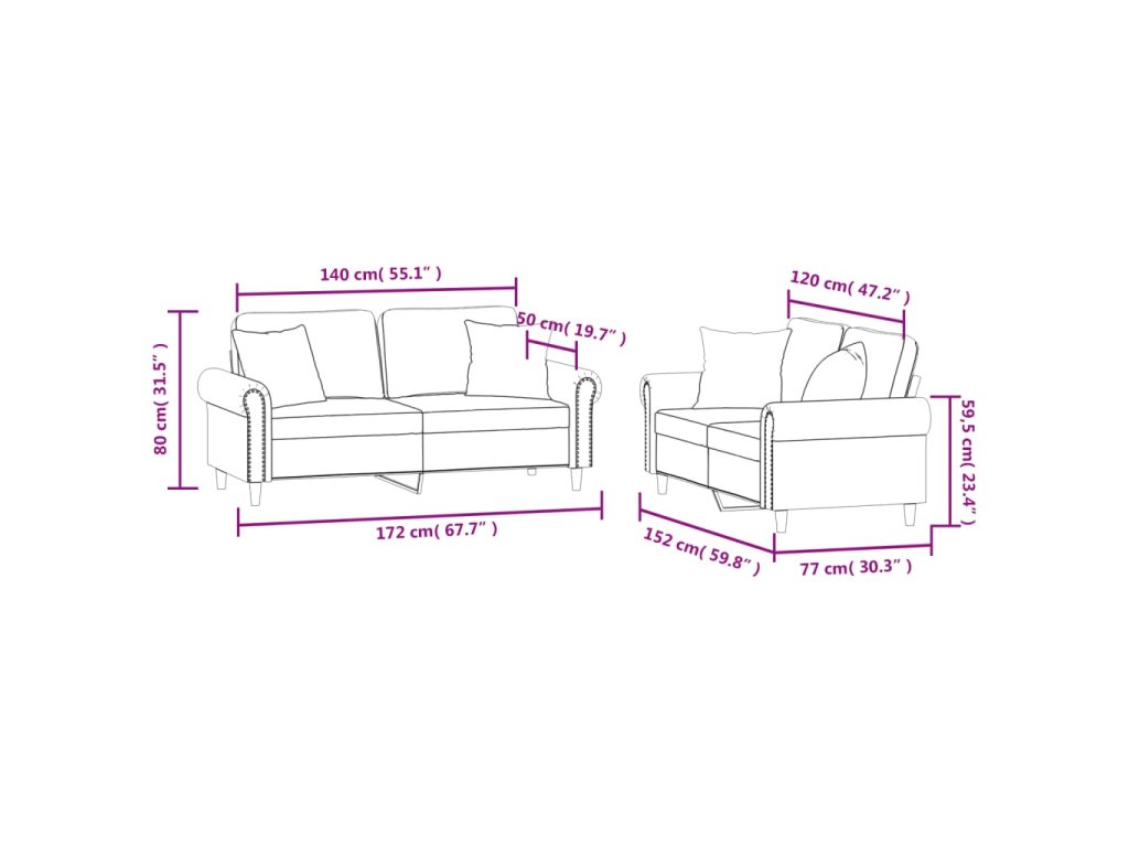 - Rozměry polštáře (každý): 40 x 40 cm (Š x H)