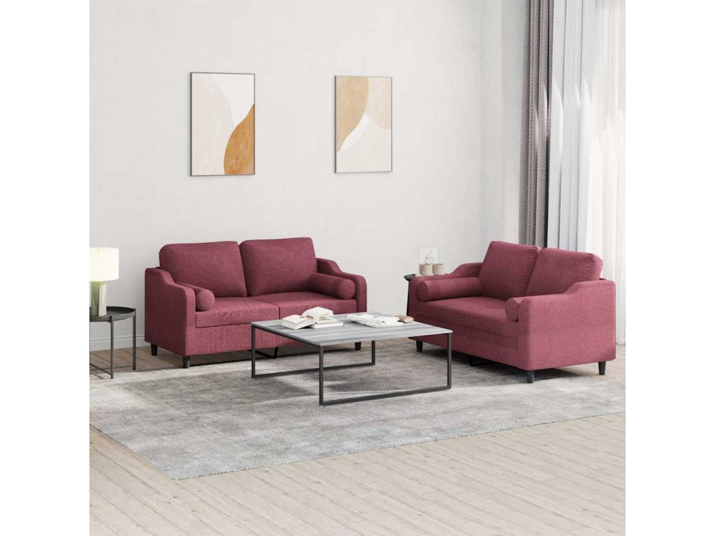 2dílná sedací souprava s polštáři vínová textil 3201824