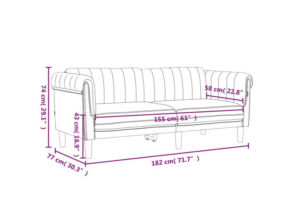 - Celkové rozměry: 182 x 77 x 74 cm (Š x H x V)