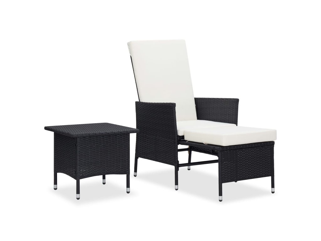 Křeslo a čajový stolek z PE ratanu jsou odolné, snadno se čistí a jsou vhodné pro každodenní venkovní použití. Tato sada zahradního nábytku je zpevněná práškově lakovaným ocelovým rámem, je robustní a stabilní a bude vám sloužit po dlouhé roky. Silně polstrované podušky poskytují pohodlné posezení. Můžete se usadit, a budete-li si to přát, natáhnout si nohy na zabudovanou podnožku pro ještě více komfortu. Stolek, který je součástí setu, je ideální pro všechny věci, co potřebujete mít po ruce, ať už je to mísa s ovocem, nápoje, občerstvení anebo různé dekorace.