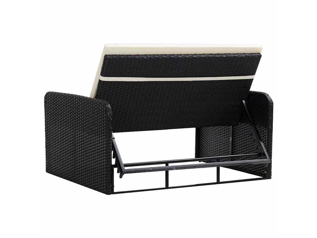 Zahradní podnož lze použít nejen k sezení nebo odpočinku nohou, ale také jako úložný prostor pro polštáře nebo dekorativní polštáře a lze ji úhledně uložit pod pohovku, aby se ušetřilo místo, tím, že se opěradlo úplně sklápí a podnož se zasune pod pohovku.