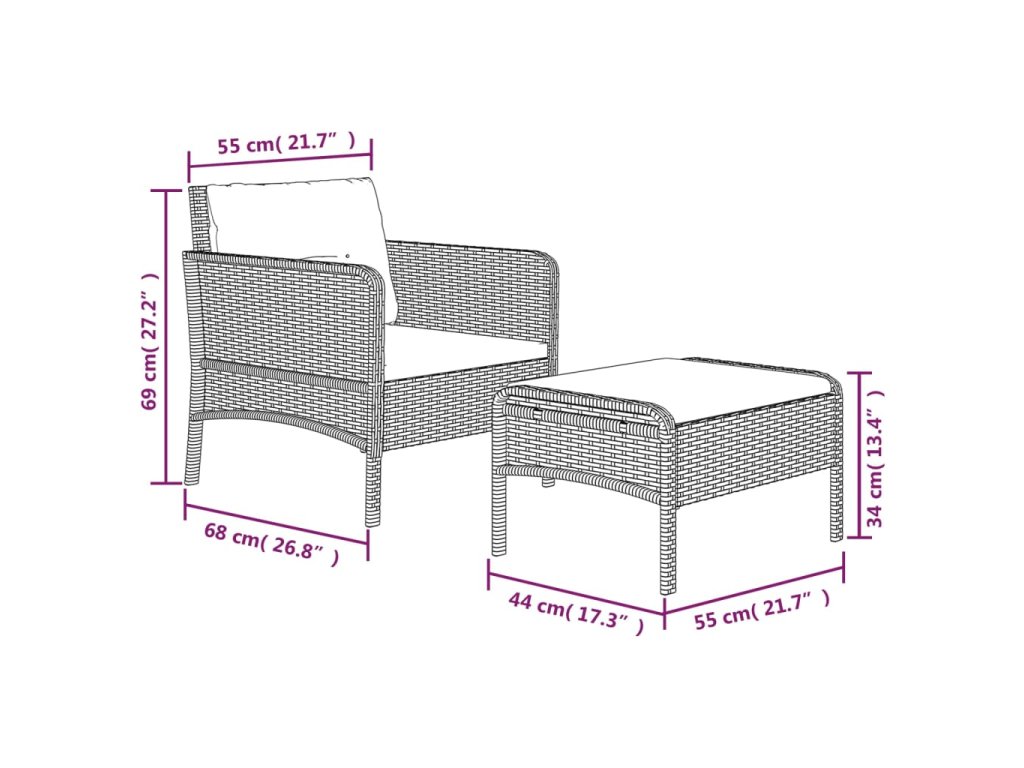 2dílná zahradní sedací souprava s poduškami šedá polyratan 319679