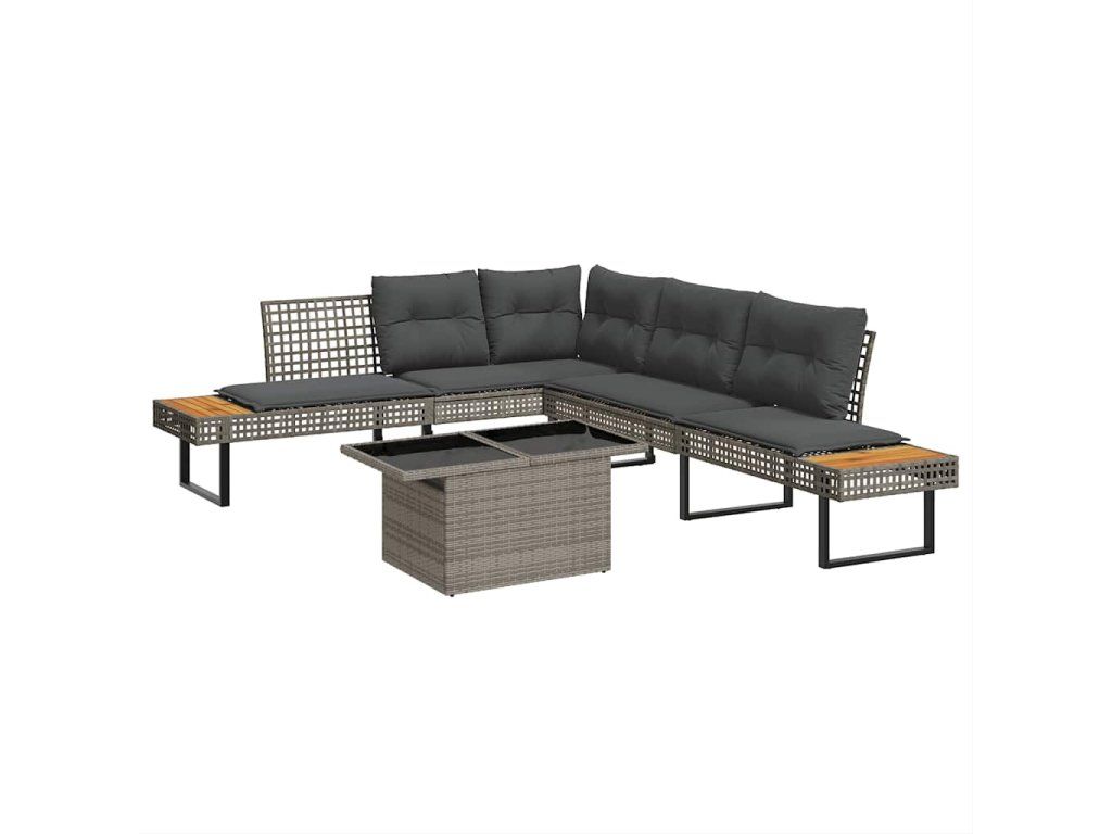 2dílná zahradní sedací souprava s poduškami šedá polyratan sklo 3277496