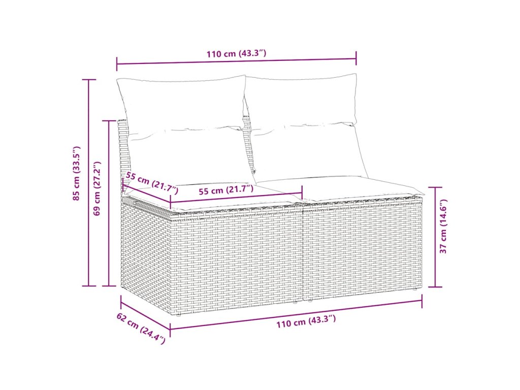 Tato zahradní sedací souprava je dokonalým doplňkem vaší zahrady, terasy nebo dvorku a poskytne vám pohodlné a příjemné místo, kde si můžete povídat s rodinou a přáteli nebo jen tak odpočívat a užívat si pobyt venku.