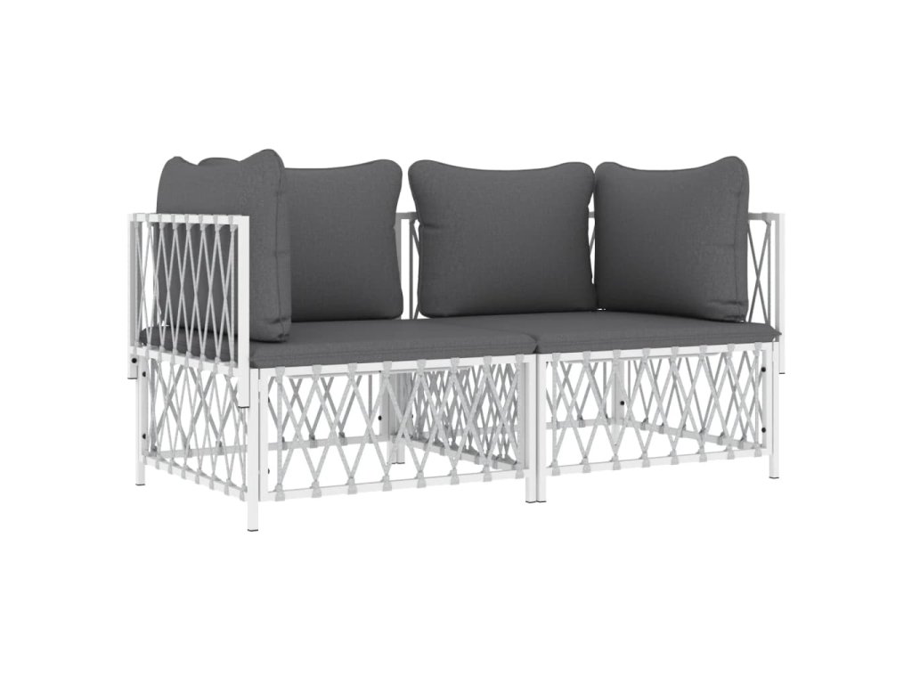 2dílná zahradní souprava s poduškami bílá ocel 3186812