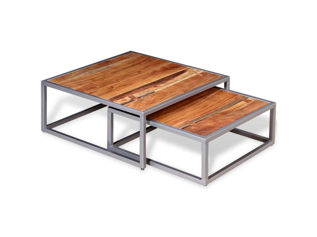 Masivní horní deska poskytuje stabilní a bezpečný povrch, na který můžete odložit vaše nápoje, koš s ovocem nebo si zde vystavit vázy či jiné dekorace. Pevné ocelové nohy přispívají k robustní konstrukci. Sada stolků je ručně vyrobená z masivního akáciového dřeva. Zručné zpracování a překrásná kresba dřeva navíc činí každý kus nábytku zcela jedinečným a lehce odlišným od ostatních.