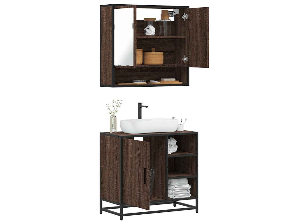 2dílný set koupelnového nábytku hnědý dub kompozitní dřevo 3300939