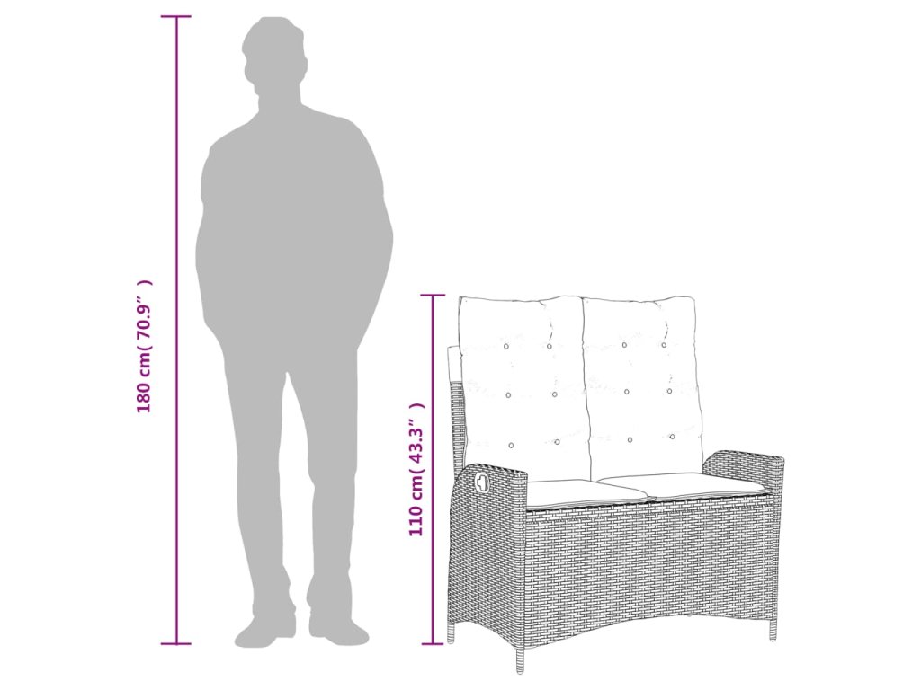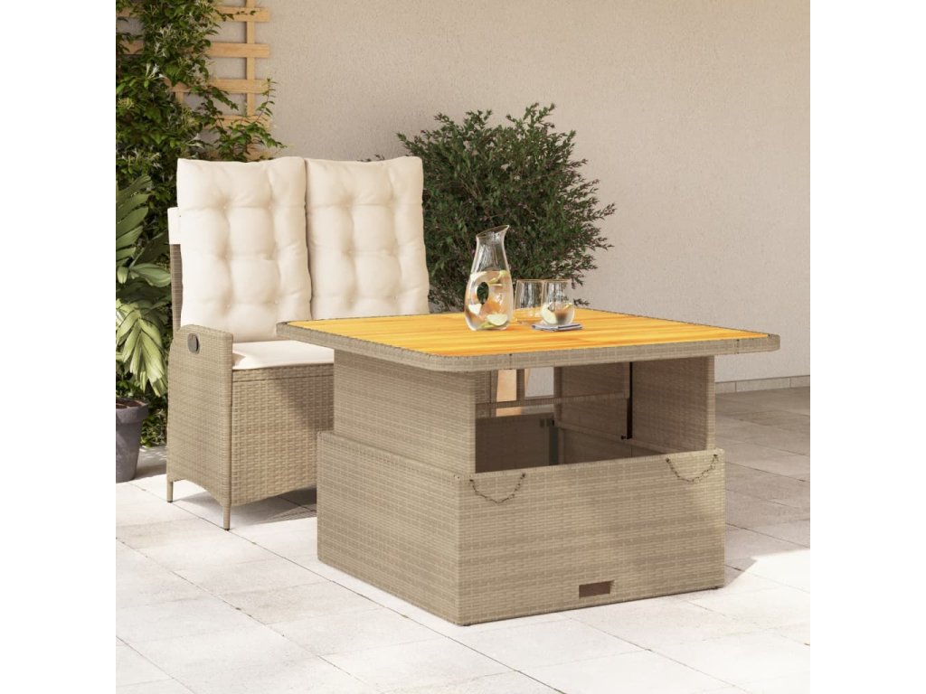 - Materiál: PE ratan, práškově lakovaná ocel, masivní akáciové dřevo s olejovou povrchovou úpravou
