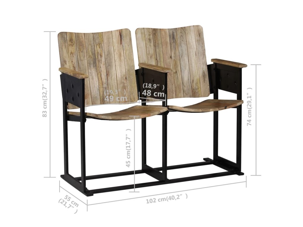 2místná lavice masivní mangovníkové dřevo a ocel 244954