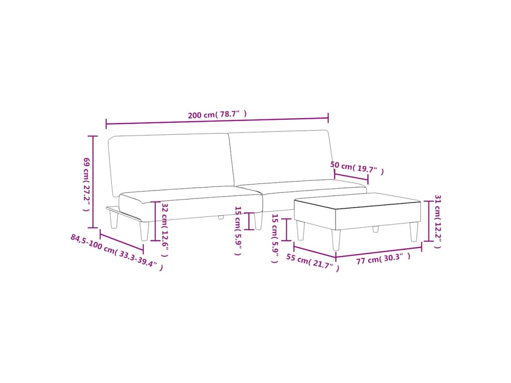 - Celkové rozměry: 200 x 84,5 x 69 cm (D x Š x V)