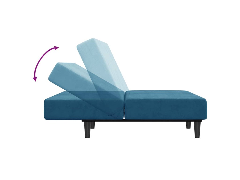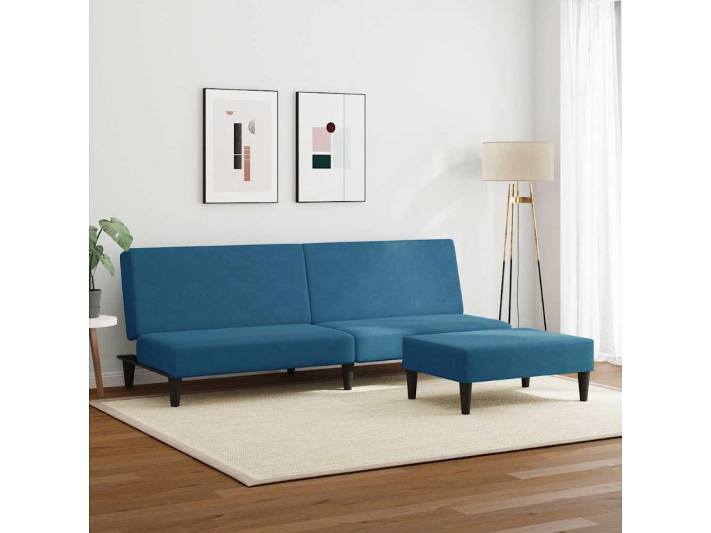 2místná rozkládací pohovka s podnožkou modrá samet 3216230