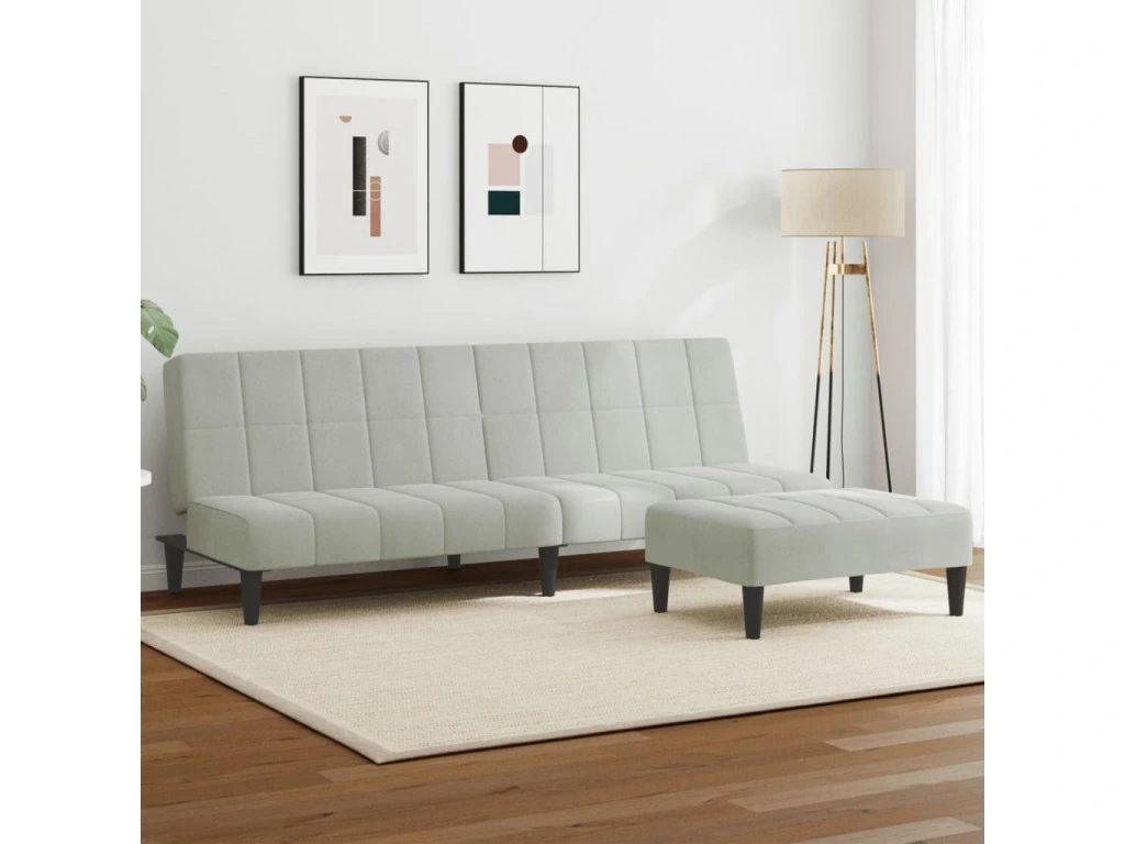 2místná rozkládací pohovka s podnožkou světle šedá samet 3258127