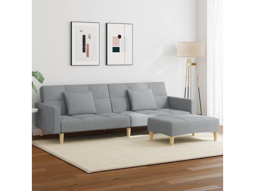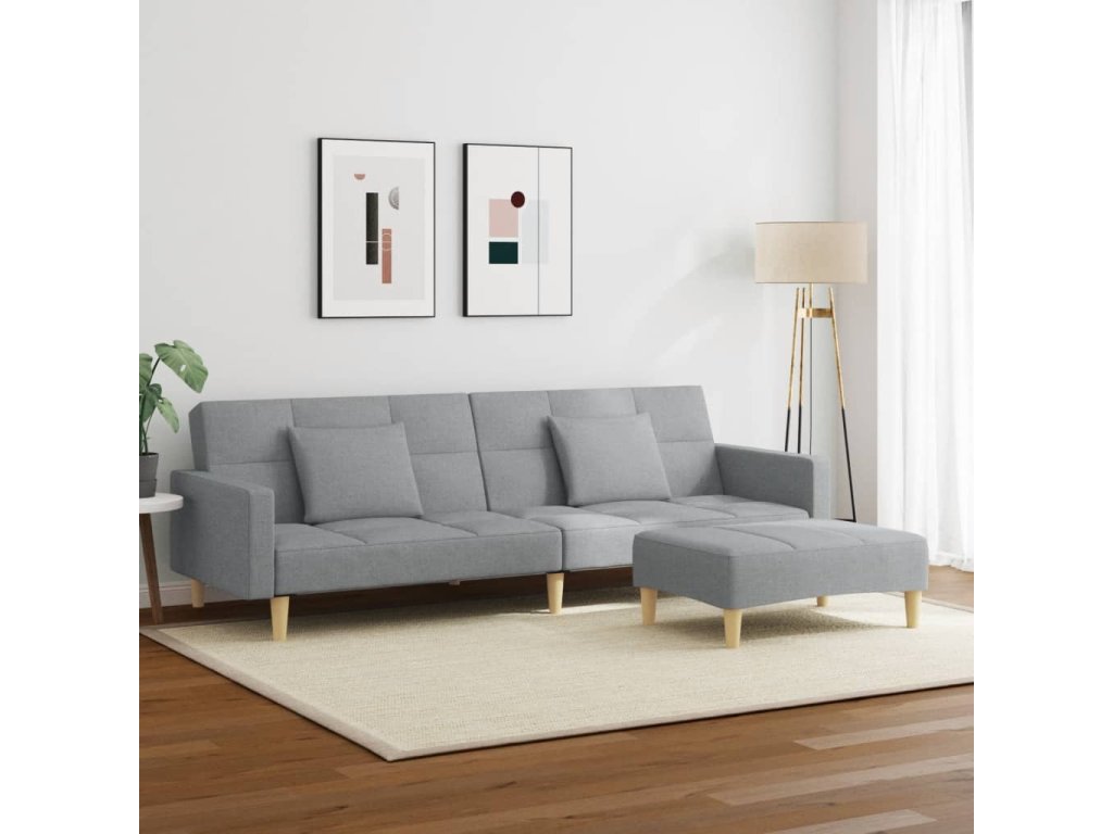 2místná rozkládací pohovka s podnožkou světle šedá textil 3258106