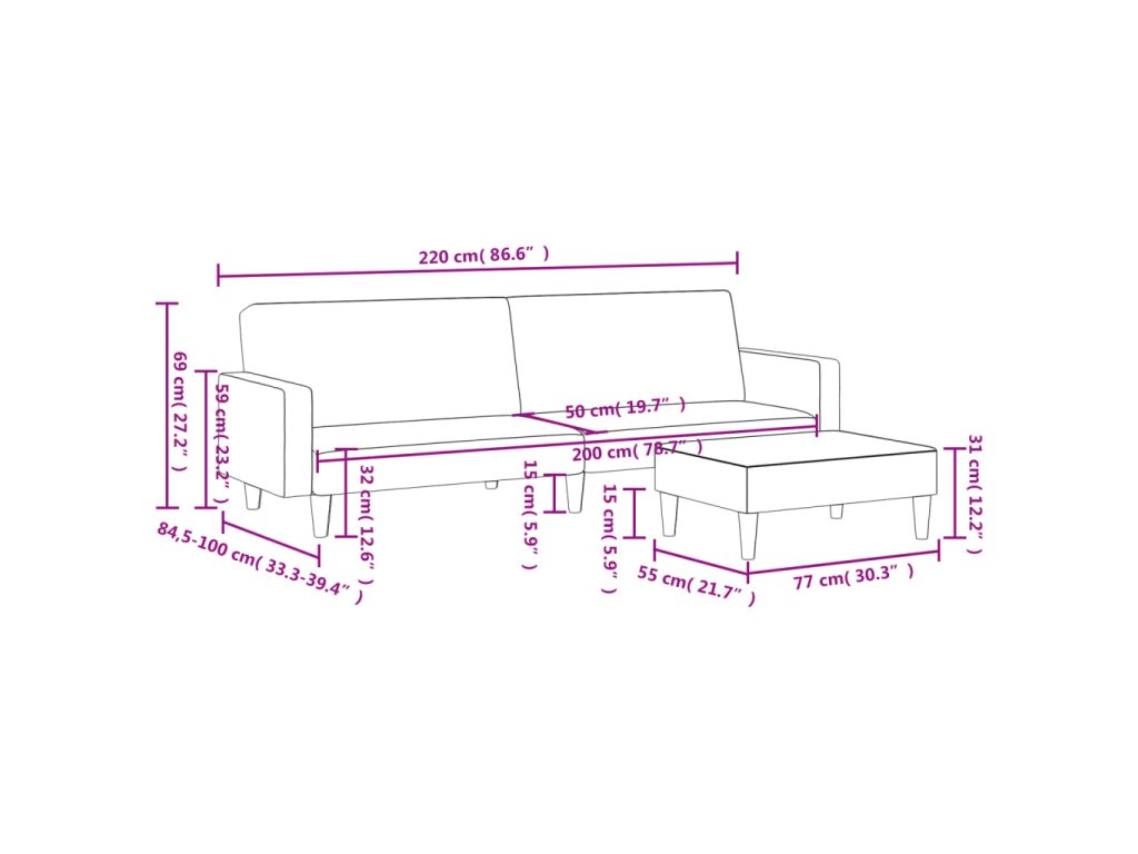 - Celkové rozměry: 220 x 84,5 x 69 cm (D x Š x V)