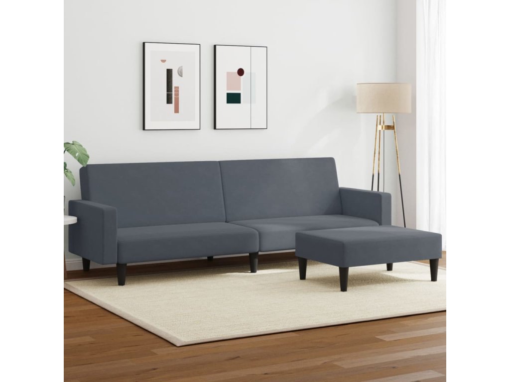 2místná rozkládací pohovka s podnožkou tmavě šedá samet 3216237