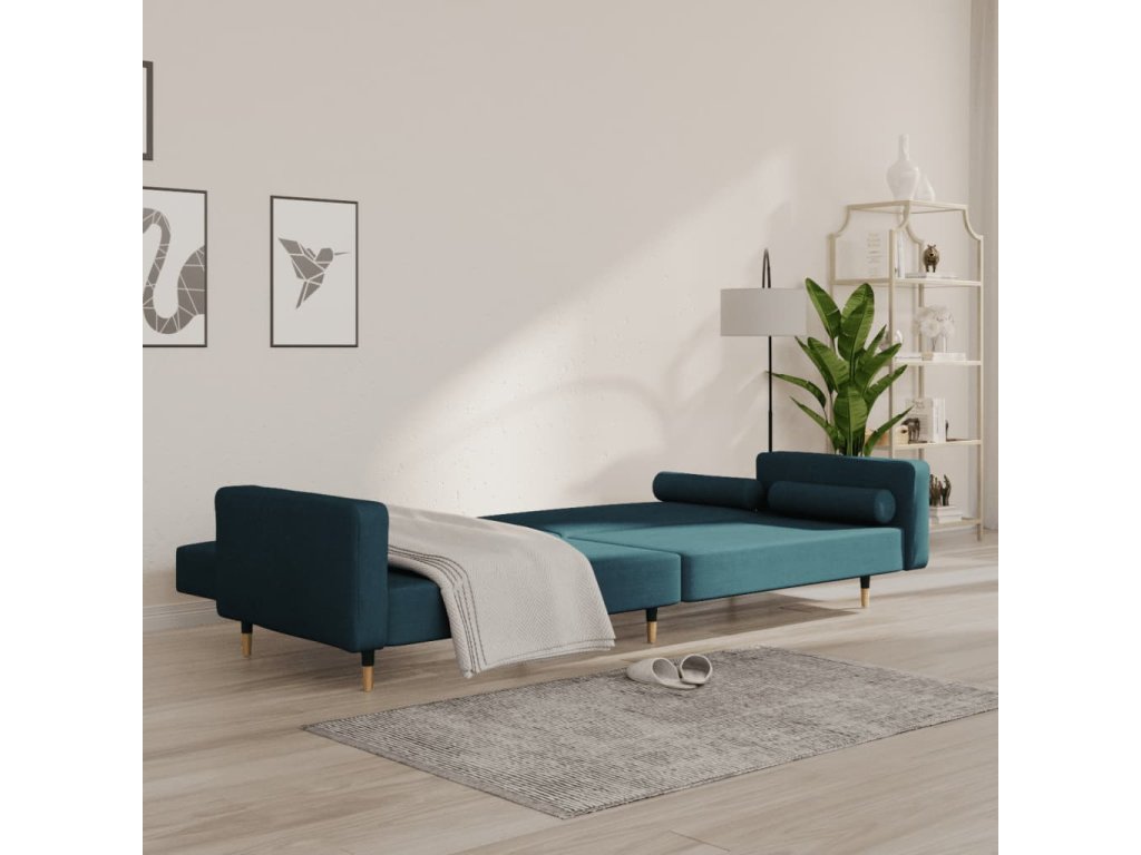 2místná rozkládací pohovka se 2 polštáři modrá samet 375748