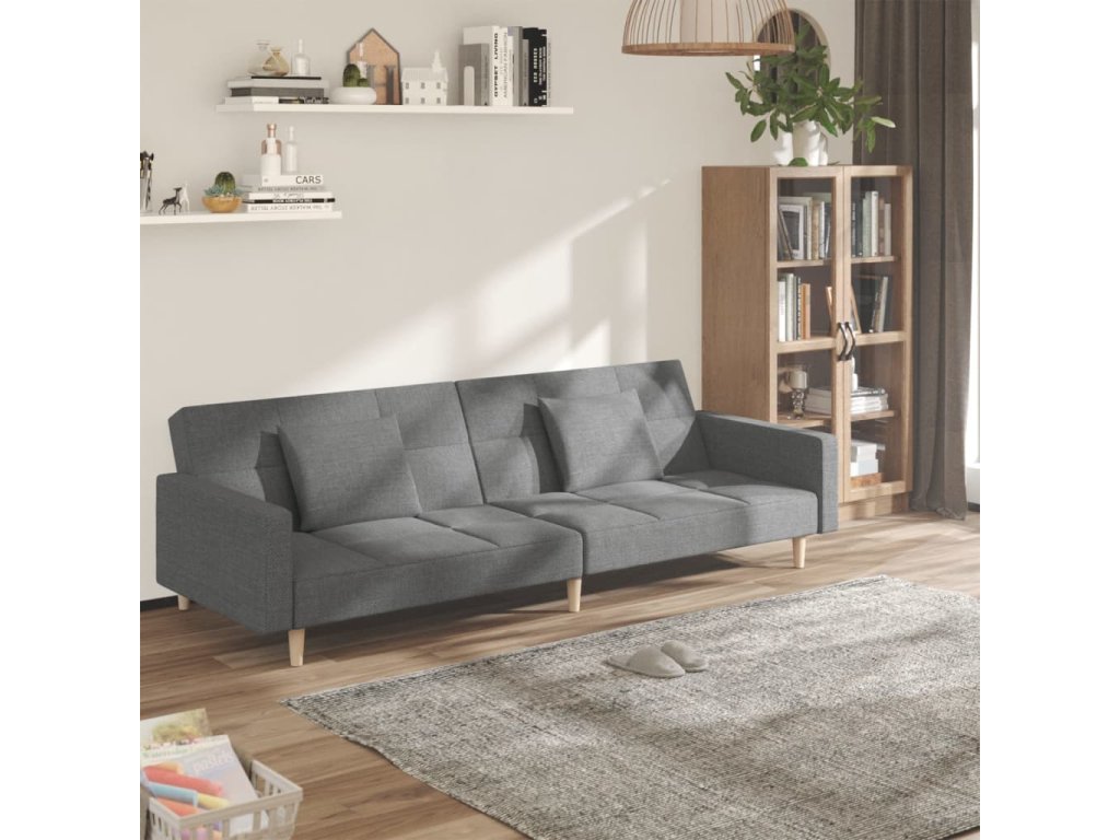 2místná rozkládací pohovka se 2 polštáři světle šedá textil 375799