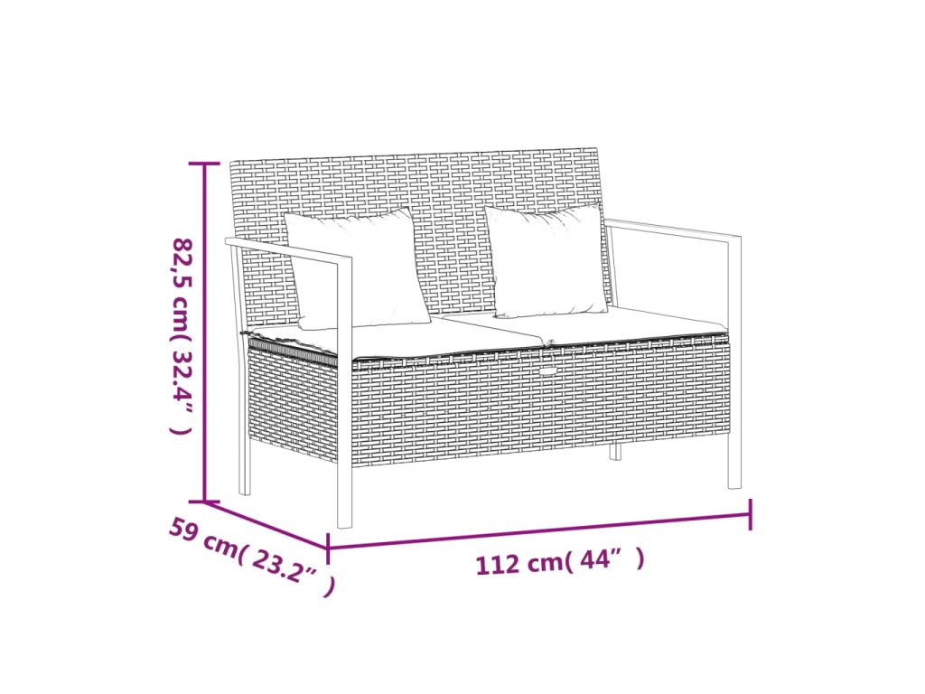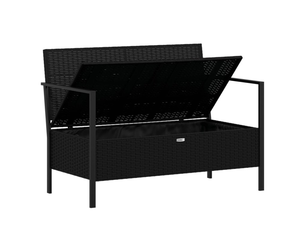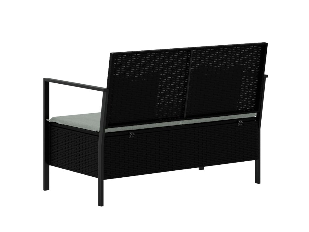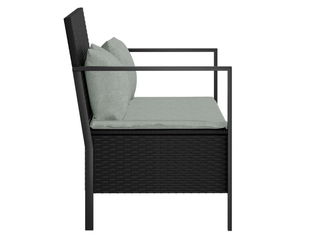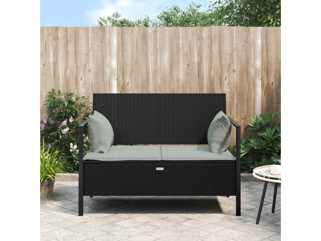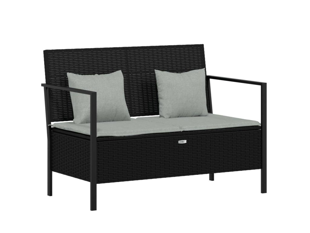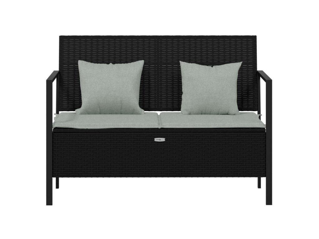 2místná zahradní lavice s poduškami černá polyratan 364112